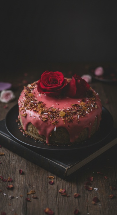 بستاشيو روز كيك المكونات: طحين قمح، طحين لوز، فستق حلبي، بهارات، حليب (جوز الهند او حليب اللوز) ، كربونة خبز، ليمون، فانيلا، زيت نباتي، حليب (كاجو او صويا)، سكر قصب السكر الحجم: دائرة قطرها 20سم 13 د.أ |